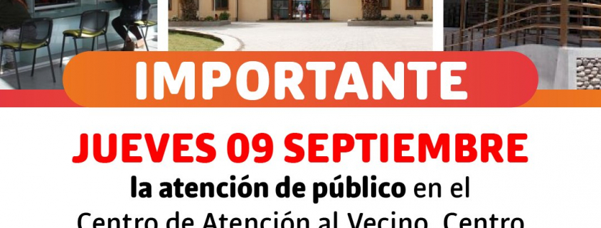 ATENCIÓN VECINAS Y VECINOS: Información importante para mañana jueves 09 de Septiembre. Atención al Vecino, Centro Cívico San Luis y en Edificio Consistorial.