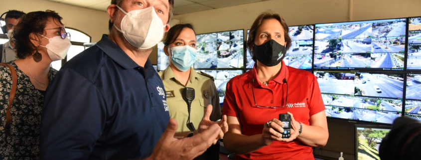 En el marco del Día Internacional de la Eliminación de la Violencia contra la Mujer, esta mañana la alcaldesa Carolina Leitao y el Gobernador de la Región Metropolitana, Claudio Orrego, hicieron un recorrido por la Central de Cámaras Municipales al interior de la 43° Comisaría de Peñalolén y revisaron en terreno la operatividad del “Programa SOS Mujer”. La iniciativa, galardonada por los Premios Avonni 2021 en la categoría Innovación, busca prevenir episodios de violencia intrafamiliar y de género en la comuna.