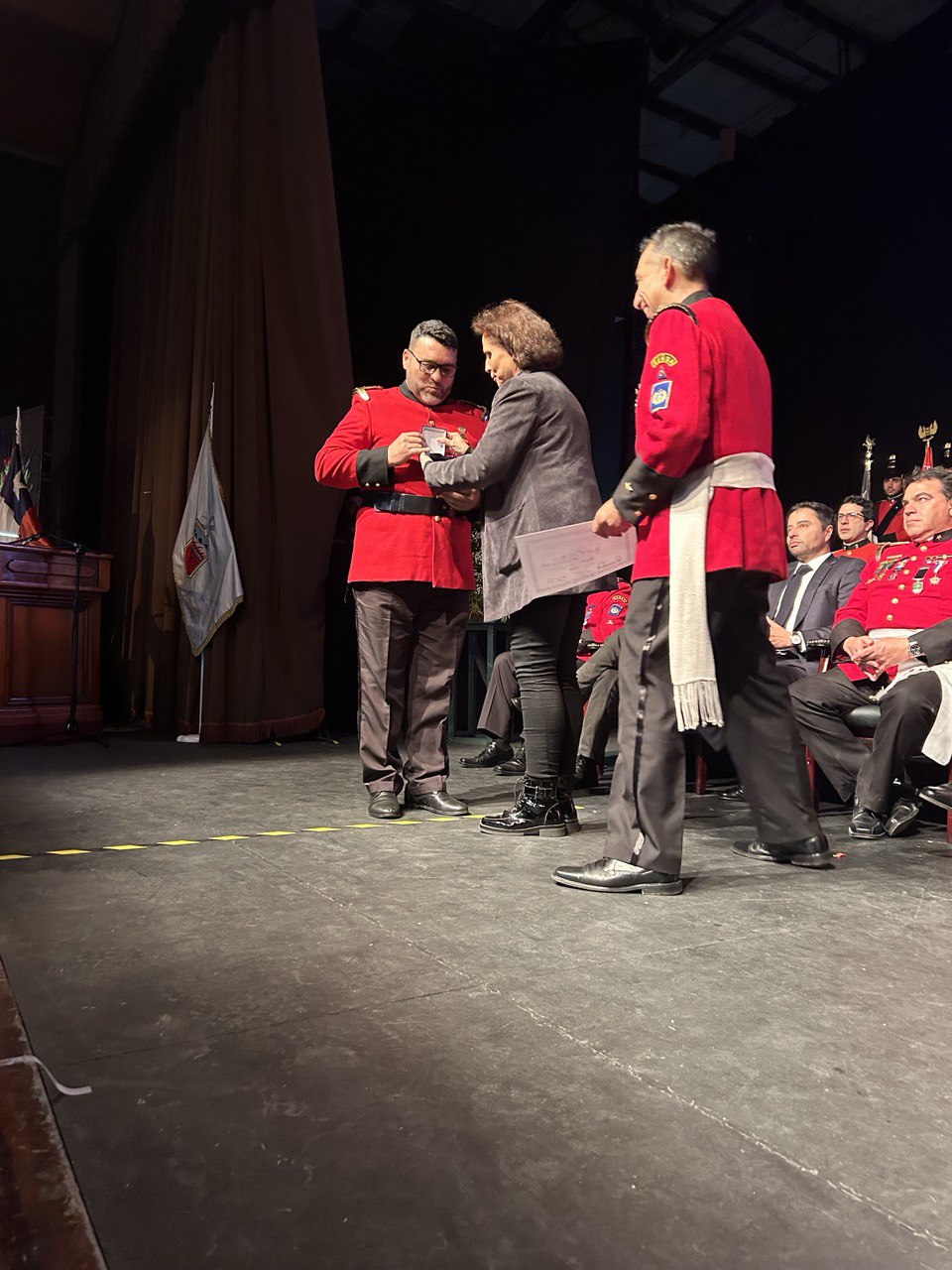 El marco de la conmemoración de los 91 años del Cuerpo de Bomberos de Ñuñoa, la alcaldesa Carolina Leitao acompañó a los voluntarios del Cuerpo de Bomberos de Peñalolén a la ceremonia en la cual se galardona a los funcionarios destacados.