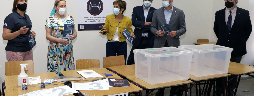 Ossa, el Ministro de la Secretaría General de Gobierno, Jaime Bellolio y la Subsecretaria de Salud Pública, Paula Daza para supervisar el local de votación, distribución de mesas, medidas sanitarias y modalidad de votación para las elecciones presidenciales de este domingo 21 de noviembre.