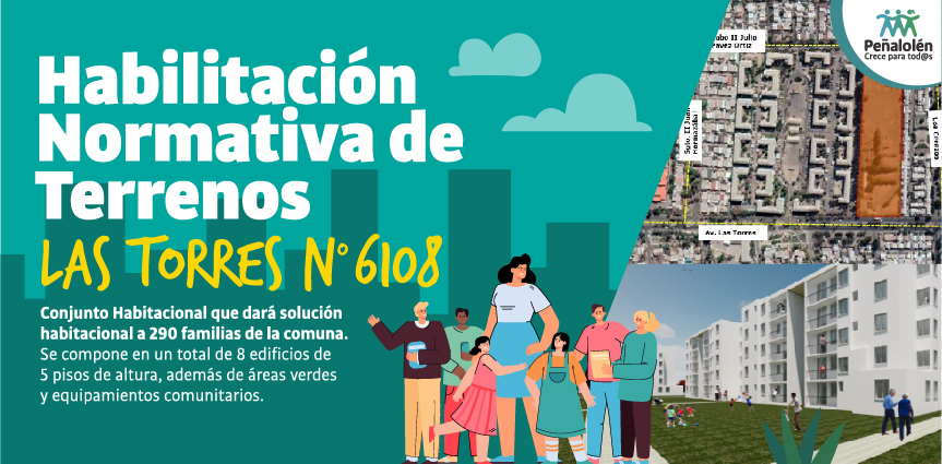 Actualmente está en proceso, y a la espera del pronunciamiento del Concejo Municipal, la Habilitación Normativa de Terrenos de Av. Las Torres N° 6108. Éste proyecto comprende una superficie de 22.101 m² para la construcción de un conjunto habitacional de 8 edificios de 5 pisos, que permitirán a 290 familias de la comuna acceder a una vivienda propia. También contempla la instalación y mejora de áreas verdes junto a equipamientos comunitarios.