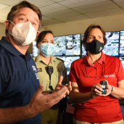En el marco del Día Internacional de la Eliminación de la Violencia contra la Mujer, esta mañana la alcaldesa Carolina Leitao y el Gobernador de la Región Metropolitana, Claudio Orrego, hicieron un recorrido por la Central de Cámaras Municipales al interior de la 43° Comisaría de Peñalolén y revisaron en terreno la operatividad del “Programa SOS Mujer”. La iniciativa, galardonada por los Premios Avonni 2021 en la categoría Innovación, busca prevenir episodios de violencia intrafamiliar y de género en la comuna.