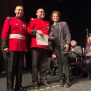 El marco de la conmemoración de los 91 años del Cuerpo de Bomberos de Ñuñoa, la alcaldesa Carolina Leitao acompañó a los voluntarios del Cuerpo de Bomberos de Peñalolén a la ceremonia en la cual se galardona a los funcionarios destacados.