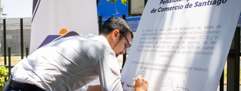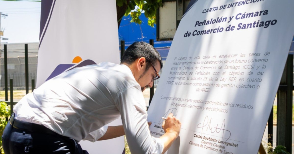 La Cámara de Comercio de Santiago (CCS) a través de su iniciativa TRAEE y la Municipalidad de Peñalolén firmaron una carta de intención que sienta las bases para la futura suscripción de un convenio de colaboración en el marco de la Ley de Responsabilidad Extendida del Productor, más conocida como Ley REP, con el objetivo de promover la gestión sustentable de los residuos de aparatos eléctricos y electrónicos (RAEE) en la comuna.
