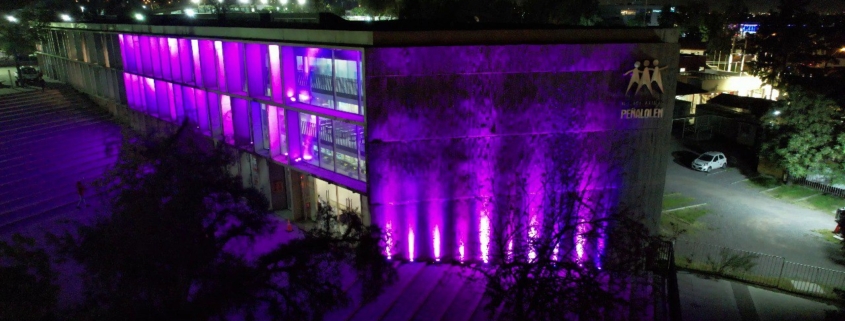 La alcaldesa Carolina Leitao encabezó la iluminación del edificio Centro de Atención al Vecino, de color rosado, en señal de que Peñalolén se suma nuevamente a los esfuerzos por concientizar a la población respecto a la importancia de estar atentos y atentas a los síntomas de este cáncer.