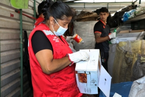 Acompañada de su marido Gabriel Hernández (45) y su hijo Gianfranco (18), se la pasa día a día clasificando los elementos que desde hace algunos años le cambiaron la vida, dieron un sello de formalidad a su trabajo y le permitieron salir adelante. Esto gracias al ingreso al programa «Reciclaje Inclusivo» como