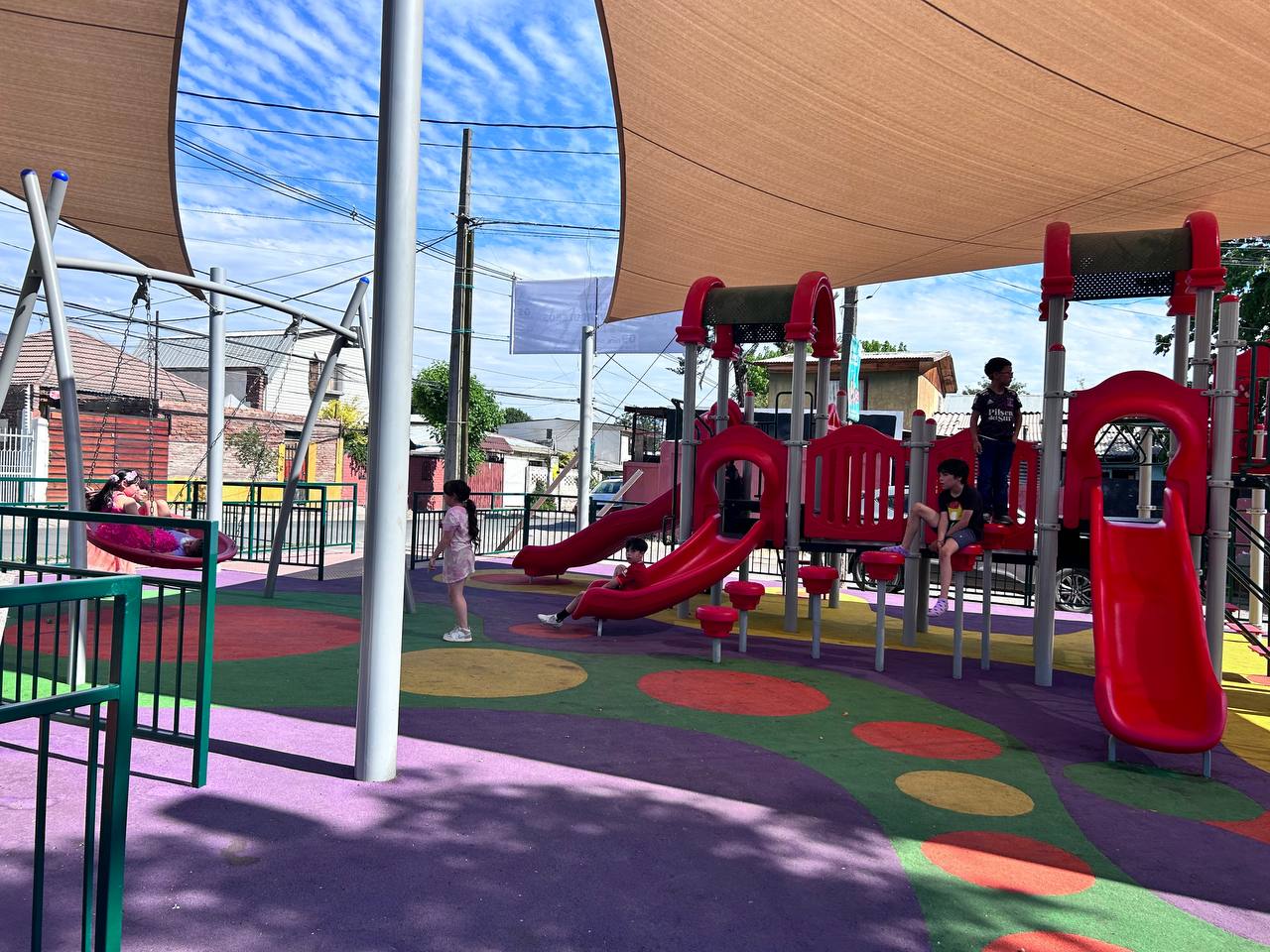 La remodelación incluyó nuevos pavimentos con énfasis en la accesibilidad universal, innovación de juegos, toldos y protecciones perimetrales con acceso único, para aumentar la seguridad de niñas y niños; además se instalaron pavimentos de caucho demarcando la zona de juegos de primera infancia.