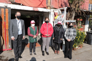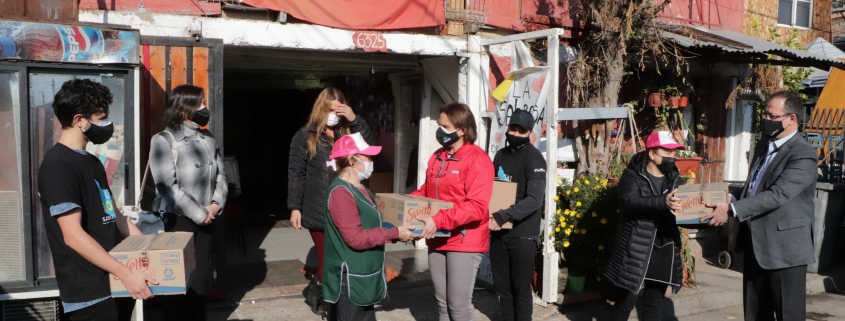 El recorrido y entrega simbólica de las cajas de alimentos, continuó con visitas a otras tres cocinas comunitarias como el Comedor Estadio Cordillera, San Luis, la Cocina Comunitaria Olga Leiva 3, Peñalolen Alto y la Cocina Comunitaria de la Villa René Schneider, Lo Hermida.