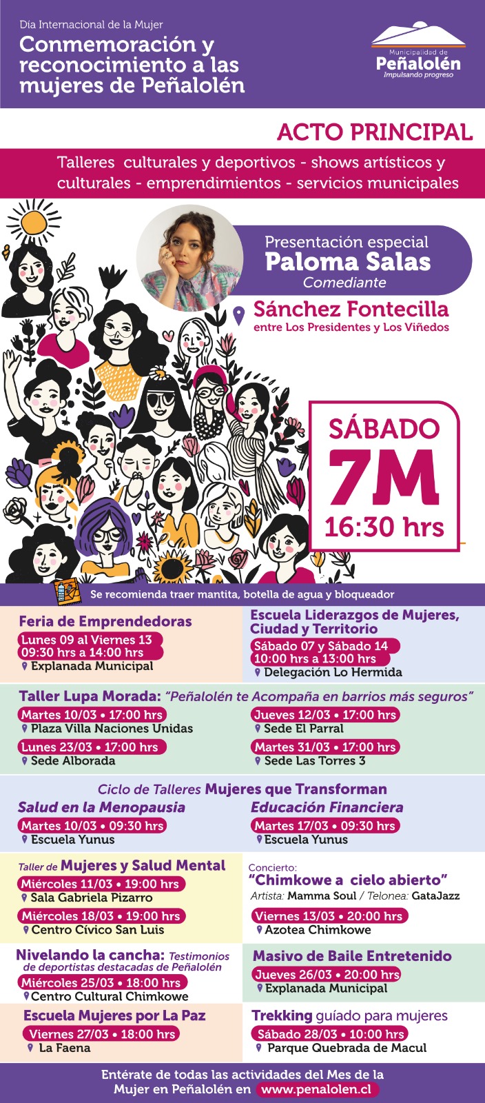 El municipio durante todo el mes organizó una agenda para abordar diferentes temáticas que son relevantes para las mujeres, el detalle lo puedes revisar AQUÍ.