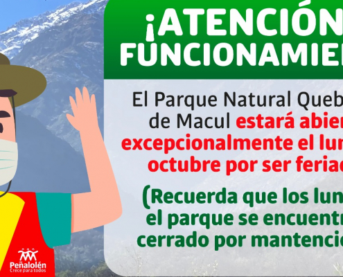 ¡¡ATENCIÓN!! Lunes feriado apertura Parque Quebrada de Macul
