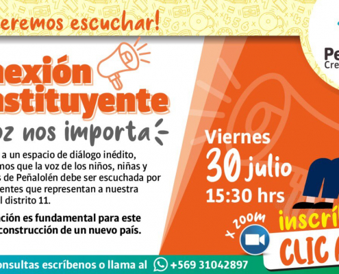 La cita será vía zoom el viernes 30 de julio a las 15.30, con distintos Constituyentes que representan al distrito 11 en la Convención Constitucional.
