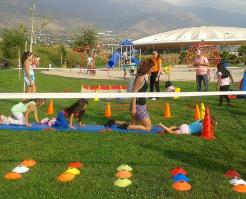 Podrás participar en juegos psicomotrices, fútbol-tenis y slacklin para niños y adolescentes y baile entretenido para adultos.