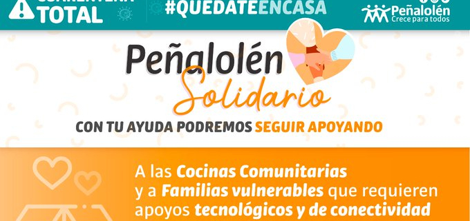 Muchas familias de nuestra comuna han sido afectadas por la pandemia, no solo en su salud, sino también en el aspecto económico con la pérdida de sus empleos. Por esta razón, el municipio lanzó la campaña Peñalolén Solidario, con la finalidad de apoyar a los vecinos que más lo necesitan, en especial a nuestras niñas y niños en sus clases online.