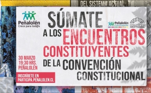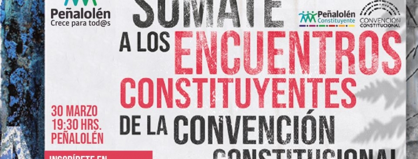 Porque Peñalolén no se queda al margen del Proceso Constituyente y sus avances, el día miércoles 30 de marzo a las 19:30 horas te invitamos a formar parte del Encuentro Constituyente Virtual de Peñalolén. En este espacio conoceremos los avances de la Convención y discutiremos sobre las normas que actualmente se encuentran en debate.