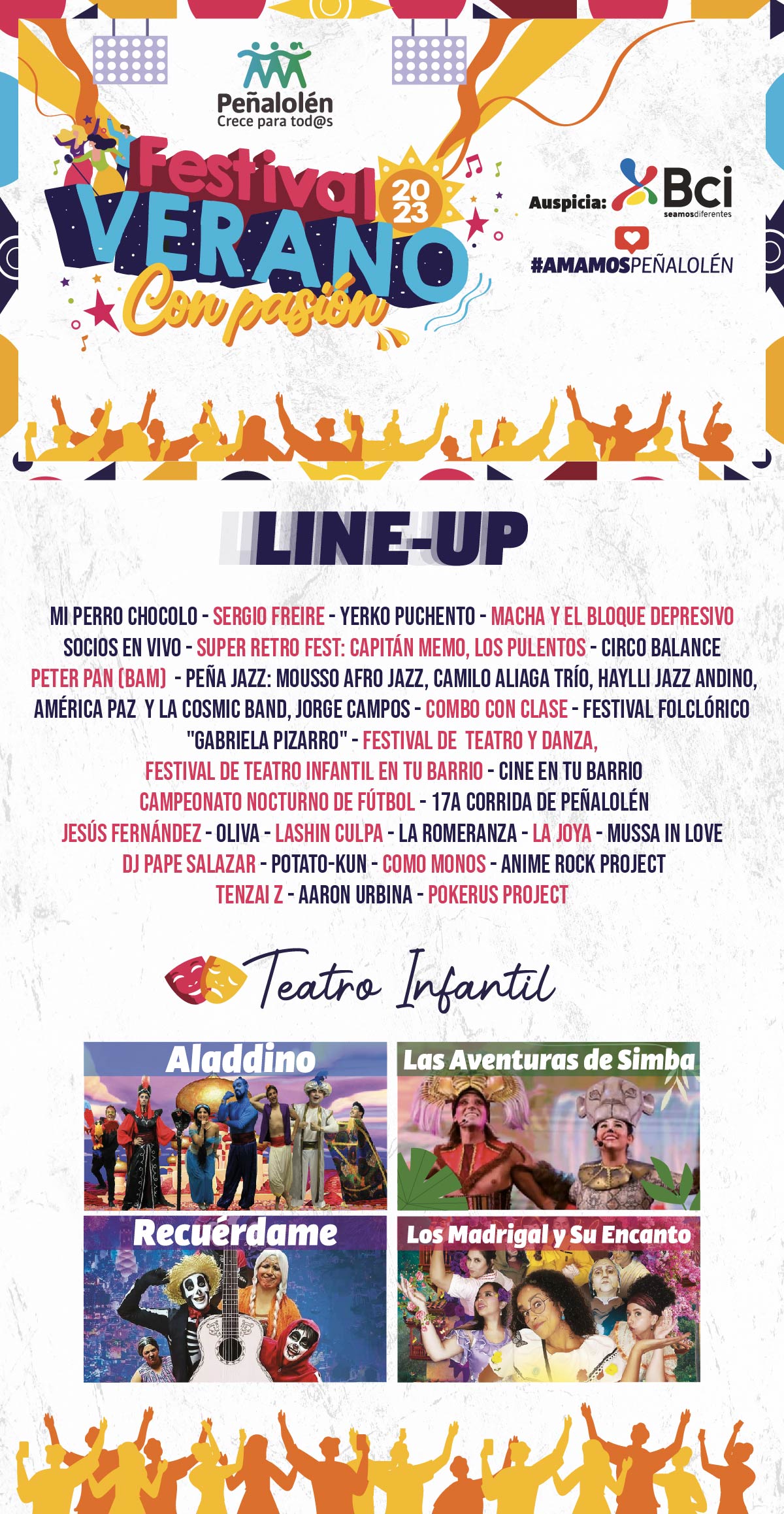 Por su parte, el teatro infantil se presentará con 12 funciones durante todo el mes. Aladdino, las aventuras de Simba y Recuérdame serán las principales obras.