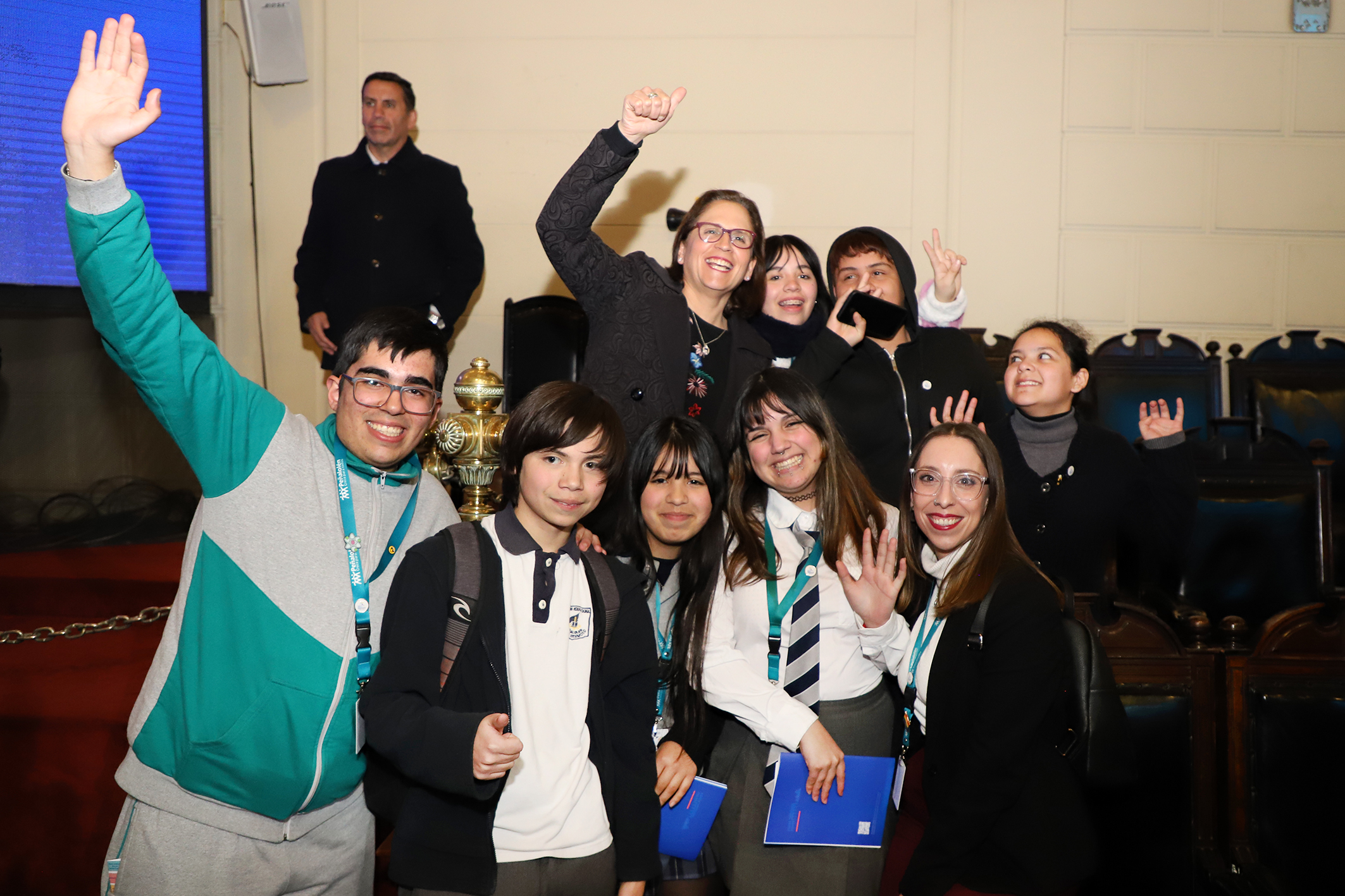En la instancia participaron diferentes representantes de la cartera del gobierno central, acompañados de niñas, niños y adolescente de diferentes instituciones de la Región Metropolitana, entre ellos miembros del Consejo Comunal de Niñez y Juventud de Peñalolén CCNJ, pertenecientes a instituciones REDUCA de Peñalolén, junto a la alcaldesa y presidenta de la Asociación Chilena de Municipalidades Carolina Leitao.