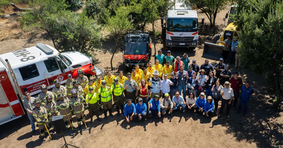 La jornada concluyó con una simulación de combate de incendio forestal, en la que Bomberos y CONAF ejecutaron labores de control en terreno, incluyendo la habilitación de cortafuegos, permitiendo visualizar de manera práctica cómo operan los equipos y cómo se coordinan las instituciones ante este tipo de emergencias.