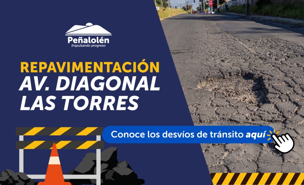 Desde el sábado 25 de octubre, se estarán realizando los trabajos de repavimentación de Av. Diagonal Las Torres, entre José Arrieta y Av. Grecia. Obra que contempla más de 3 kilómetros de mejora y tendrá una duración aproximada de 10 meses.