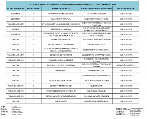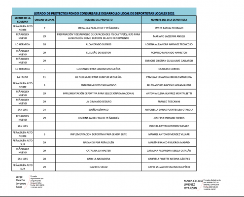 La Municipalidad de Peñalolén, a través del Departamento de Participación Ciudadana, agradece a todas las organizaciones sociales, deportivas y personas naturales que postularon sus iniciativas a los Fondos Concursables Municipales 2021, en sus versiones Desarrollo Local, Desarrollo Deportivo Local y Desarrollo de Deportistas Locales.