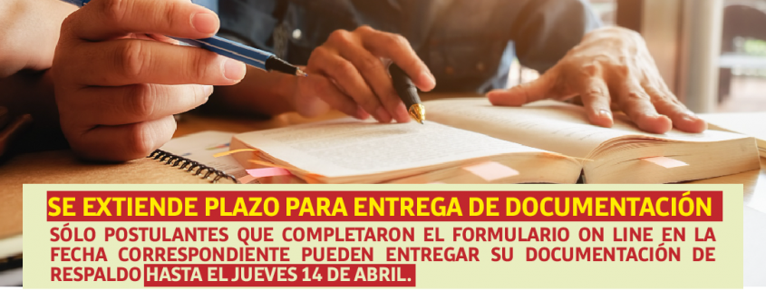 A aquell@s postulantes a la Beca Municipal de Ingreso, Beca Municipal de Mantención y Beca de Educación Superior para personas en situación de discapacidad, les recordamos SOLO A QUIENES COMPLETARON EL FORMULARIO ON LINE en las fechas correspondientes, pueden realizar entrega de su documentación de respaldo hasta el día Jueves 14 de Abril.