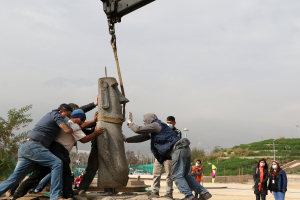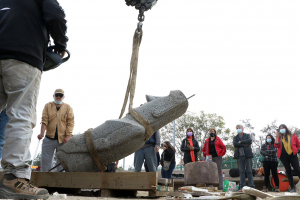 La tarde del pasado miércoles se realizó la instalación de un Moai, de piedra volcánica, en parque ceremonial Pueblo Originarios de Peñalolén, éste es el último que se instaló en el recinto, donde ya hay otros seis Moai, en el sector destinado a la cultura Rapa Naui.