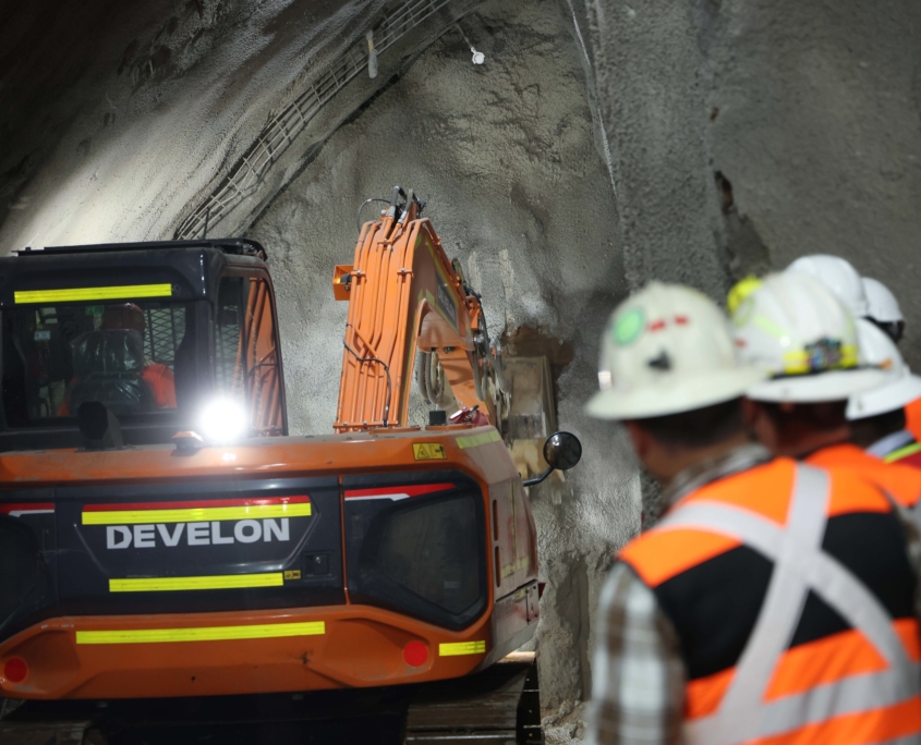 El alcalde Miguel Concha, junto al vicepresidente de la República, Álvaro Elizalde, la ministra de Obras Públicas, Jessica López; el Delegado Presidencial, Gonzalo Durán, y alcaldes de las comunas de La Reina, Macul y Ñuñoa, más el gerente general del Grupo Costanera, Diego Savino, supervisaron el avance en la construcción de la autopista subterránea Américo Vespucio Oriente II (AVO II), que beneficiará directamente a más de 600 mil personas.