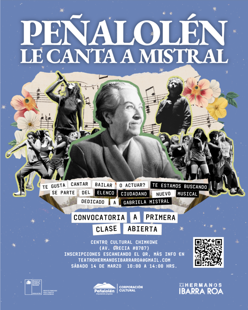 La Compañía Hermanos Ibarra Roa y la Municipalidad de Peñalolén, a través de su Corporación Cultural, invitan a vecinas y vecinos de la comuna a conformar un elenco ciudadano que montará una obra musical inspirada en la vida y obra de Gabriela Mistral, Premio Nobel de Literatura.